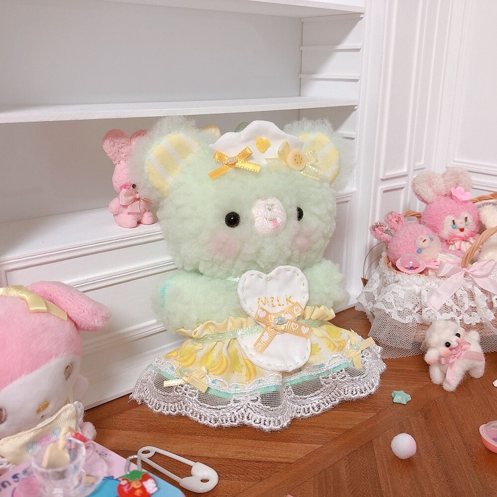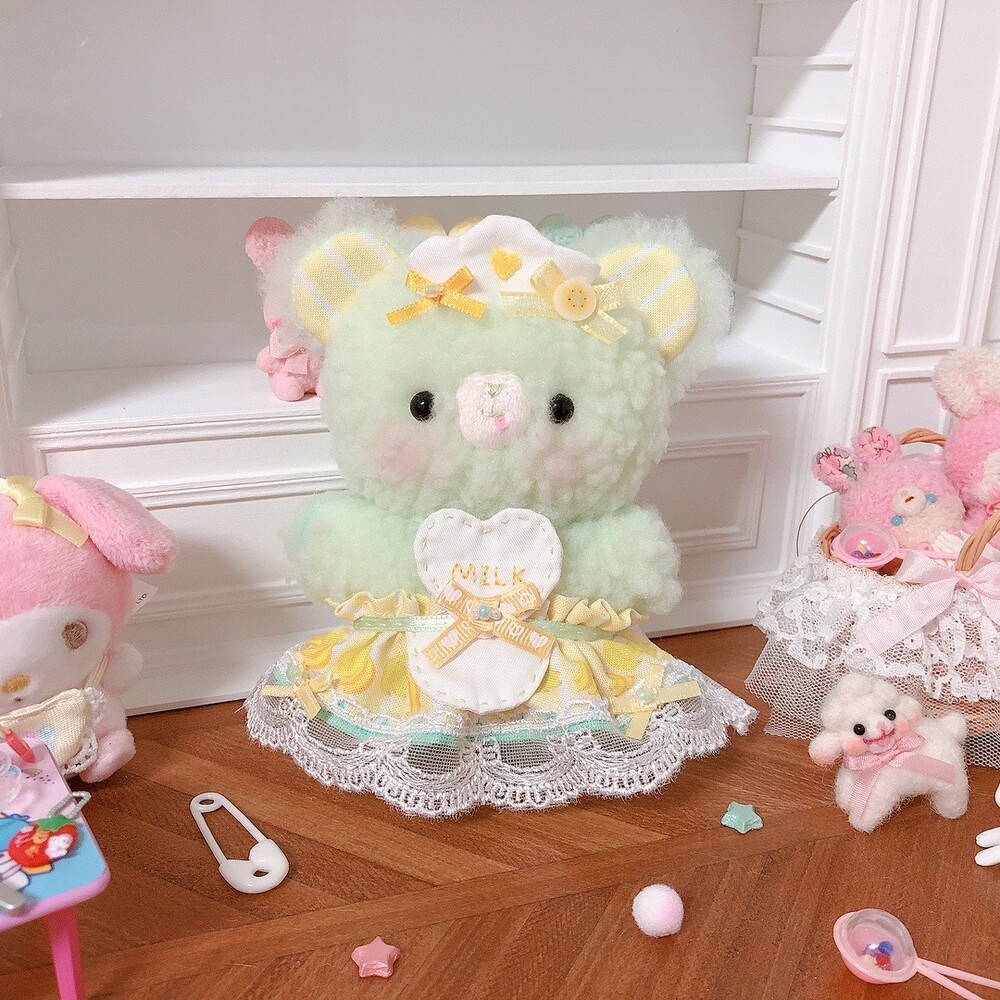 풍성한 스커트에 귀여운 하트에이프런을 맨 곰돌이에요.