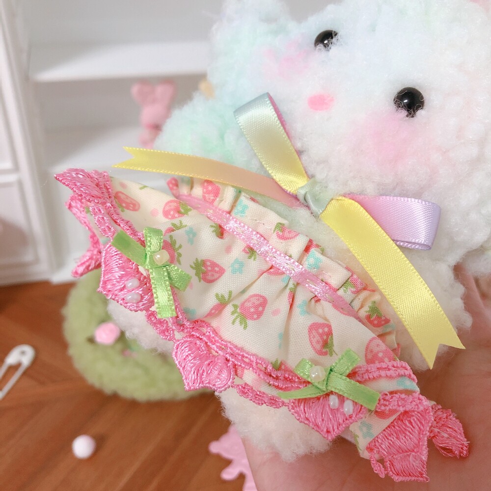 스커트엔 귀여운 하트레이스와 작은 리본들로 장식해주었는데 하트부분을 딸기처럼 표현해보았어요.