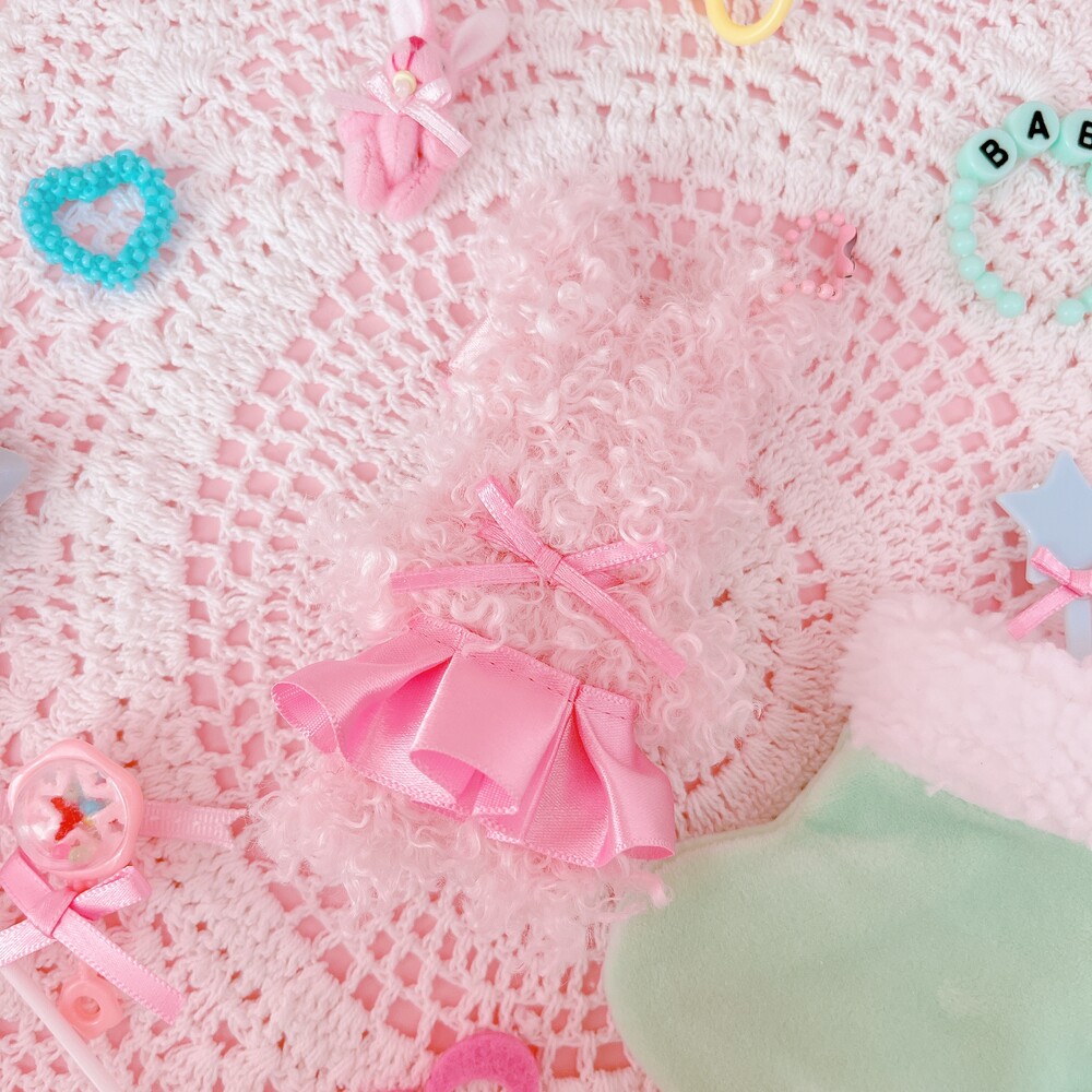 예쁜 스커트를 입혀주고 사랑스러운 리본을 달아주었어요.
